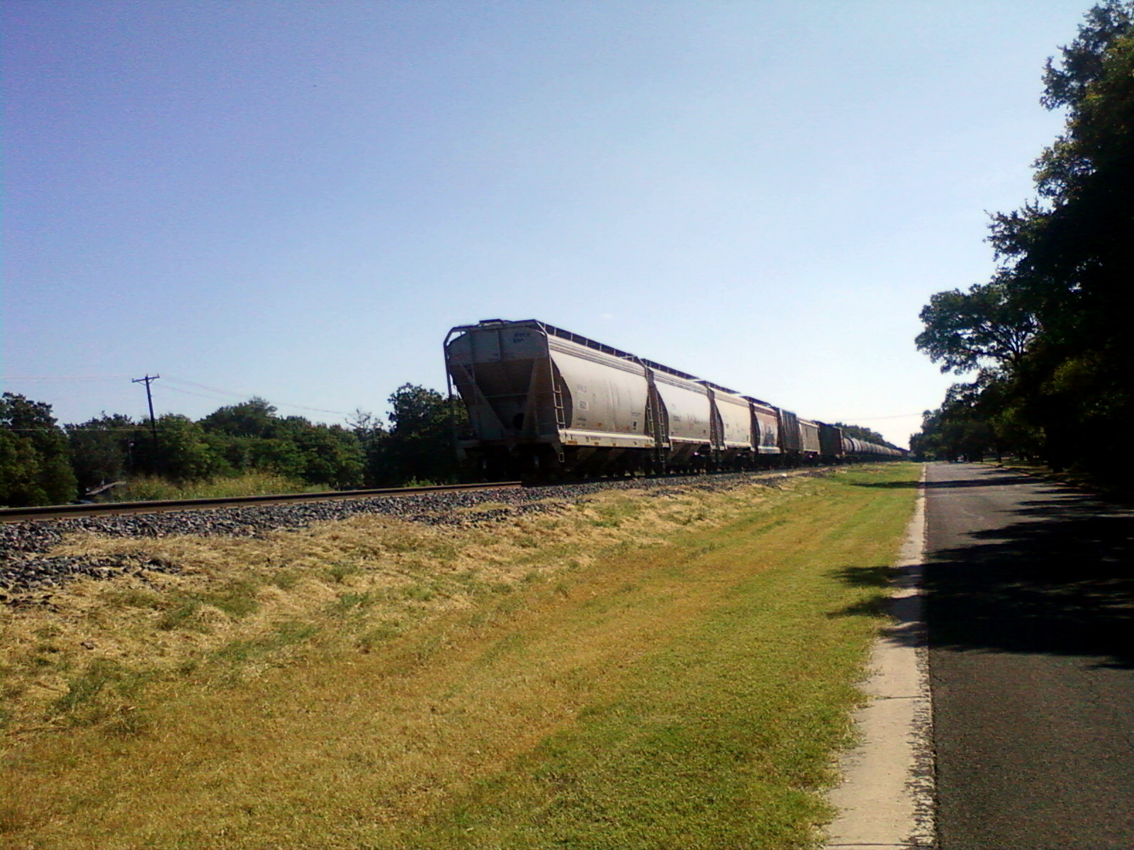 I added the dog park as part of the route. There's a quick but steep climb and then a fun downhilll ride to the park. Then something fun happened. The train was coming down the tracks. When it was close enough, I thought I'd just wave at the train. I couldn't see anyone at the engine but I waved. And the conductor blew the horn for me! I made the train blow its horn. That was so cool!!!